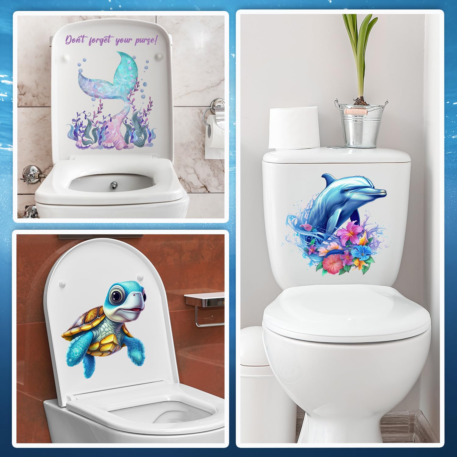 - What You Get: Package containing 3 pieces of ocean toilet seat stickers. You can attach watercolor ocean animals toilet seat decals to the sides of the toilet seat or the toilet tank to create a one-of-a-kind toilet. This looks great. Enough to meet your daily needs and to be in the ocean every day.