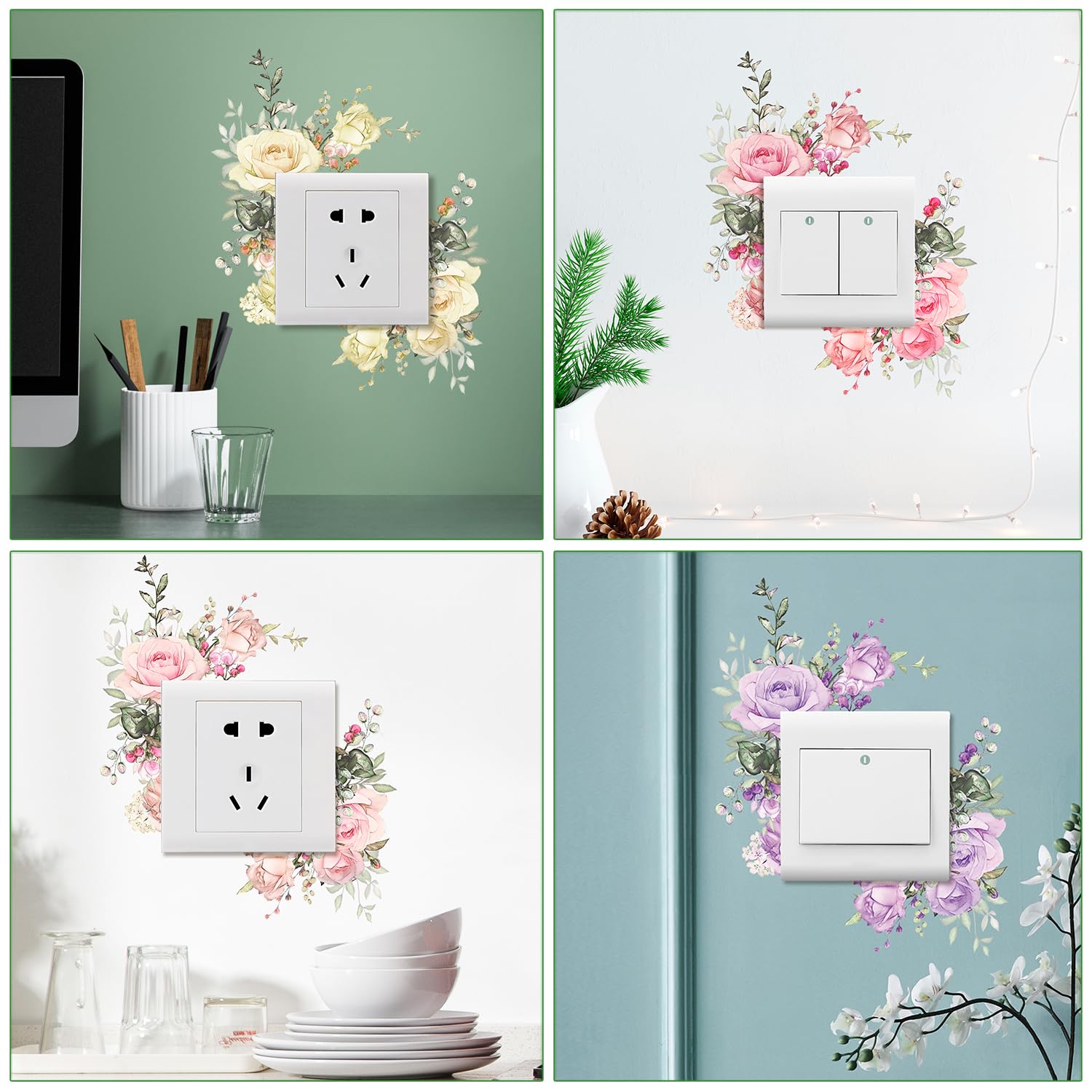 4 PCS Removable Fresh Plants Flower Switch Stickers Peony Rose Leaf Light Switch Decal Socket Decor Light Switch Cover for Kids Girls Bedroom Living Room Nursery Bathroom (B)