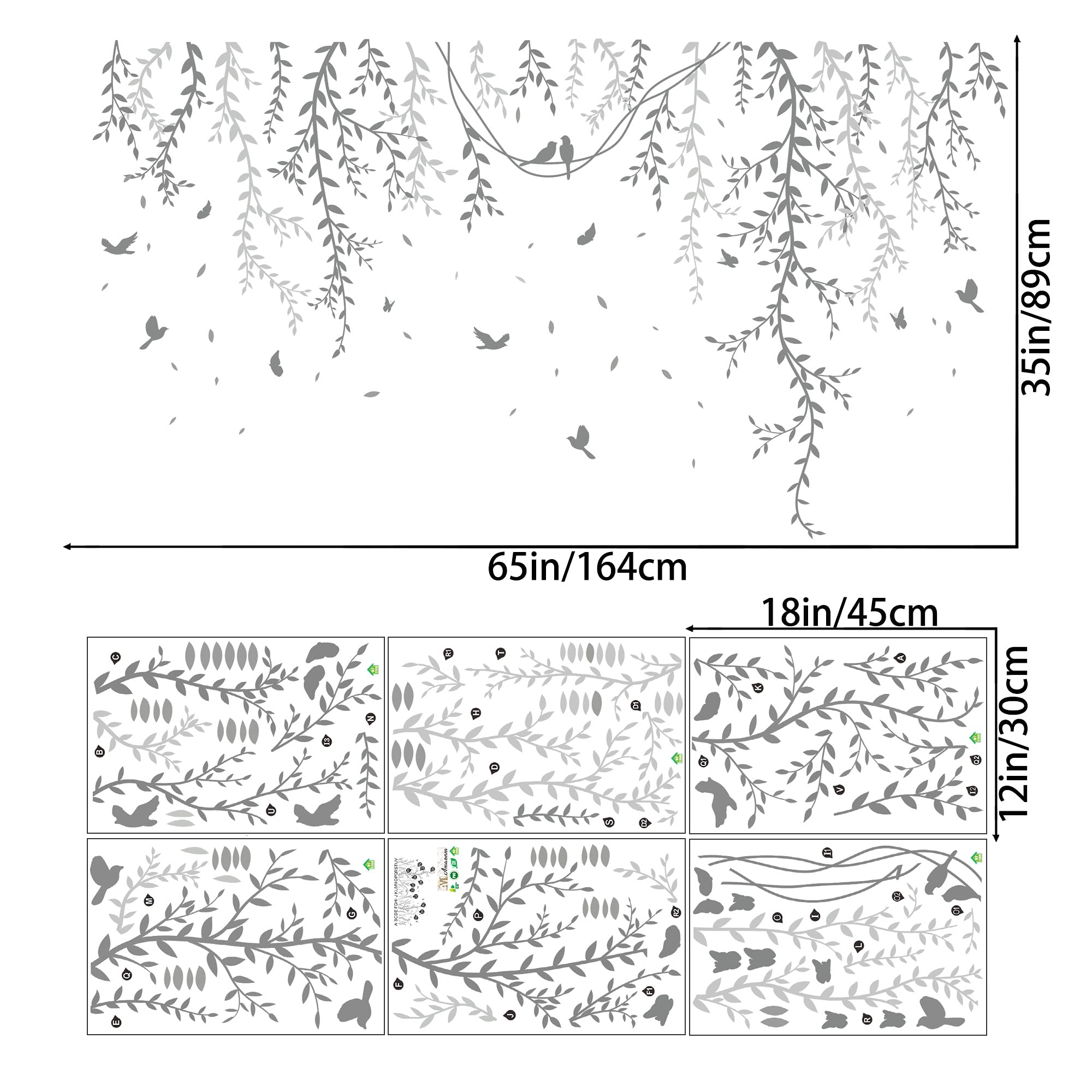 Amaonm Removable Hanging Vines Wall Stickers DIY Green Leaves Plant Grass Wall Decals Peel and Stick Flower Vine Decor for Kids Baby Girls Nursery Bedroom Living Room Offices Classroom Grey