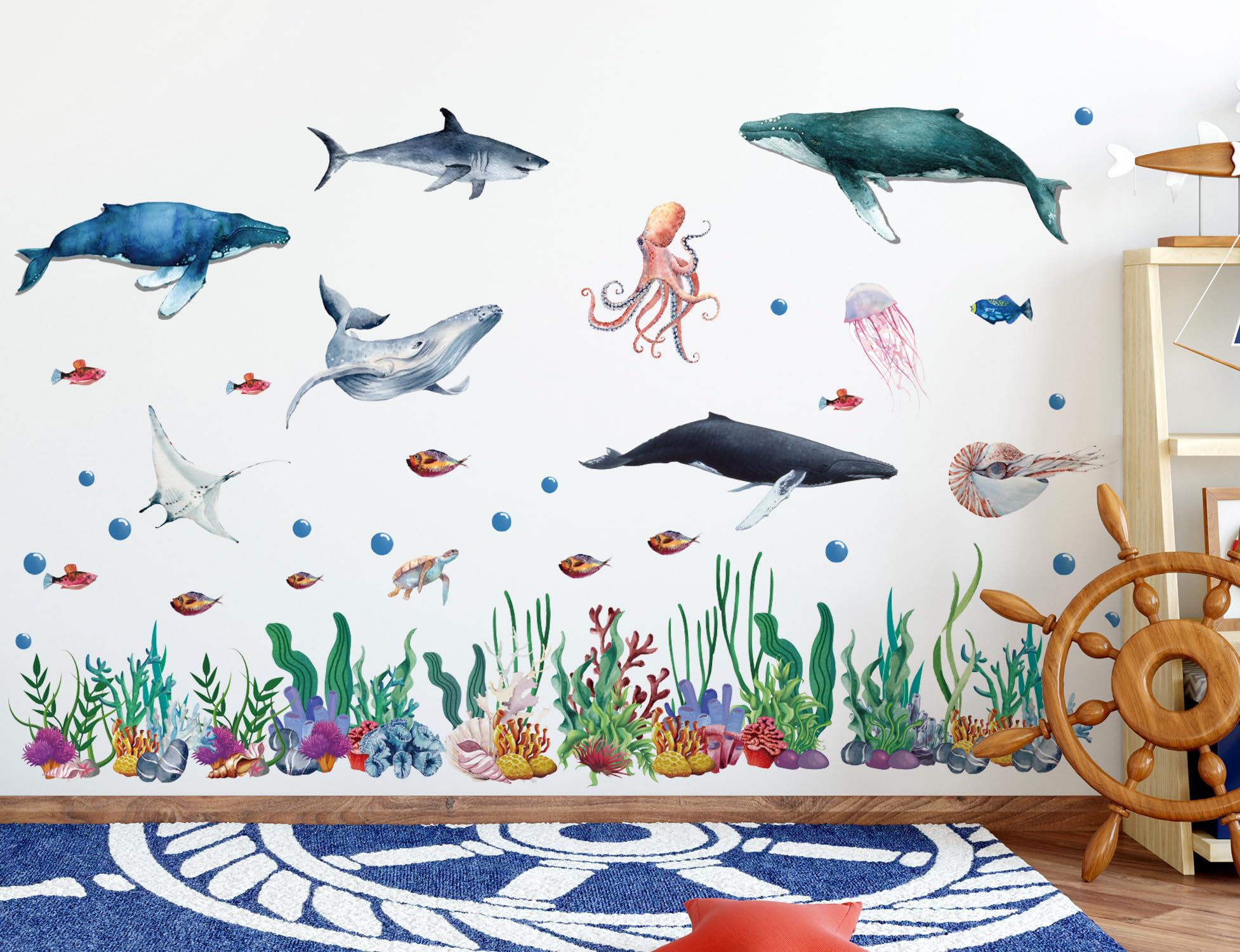 - Wide application: our ocean life wall decors have attractive pattern design, so they are suitable for kids room, dorm room, bedroom, living room, kitchen, bathroom, on walls, doors, windows, closet, etc.; These wall stickers will make you feel like you are in the ocean world, and can satisfy your curiosity and love for the ocean world